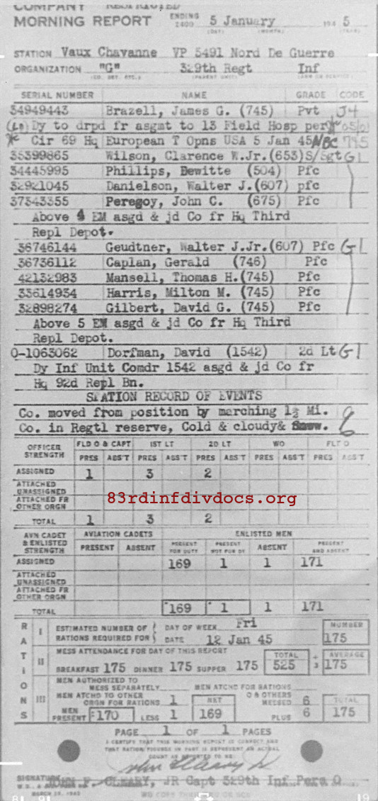 Morning report G/329 for January 5, 1945