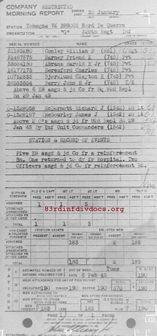Morning report G/329 for January 30, 1945
