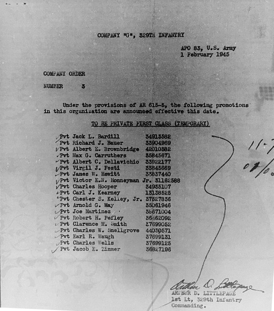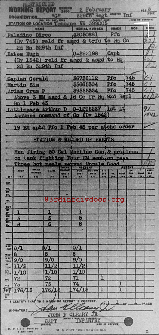 Morning report G/329 for February 2, 1945
