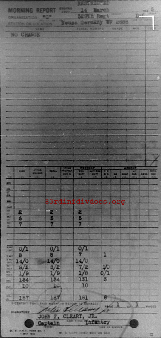 Morning report G/329 for March 14, 1945