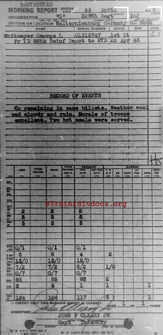 Morning report G/329 for April 23, 1945