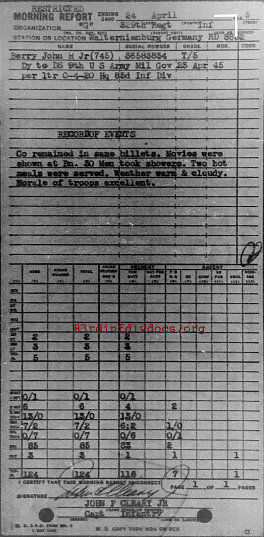Morning report G/329 for April 24, 1945