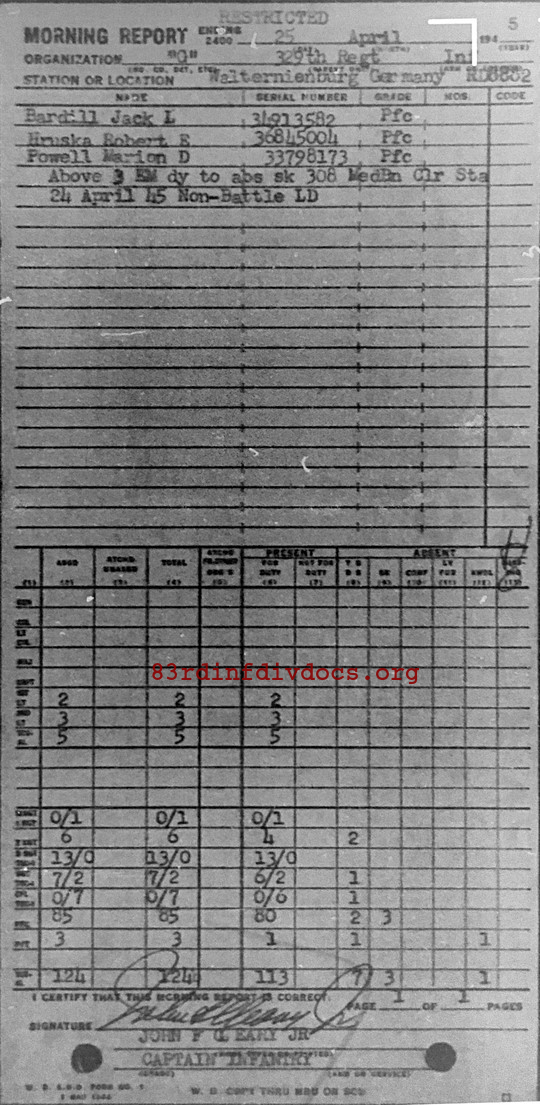 Morning report G/329 for April 25, 1945