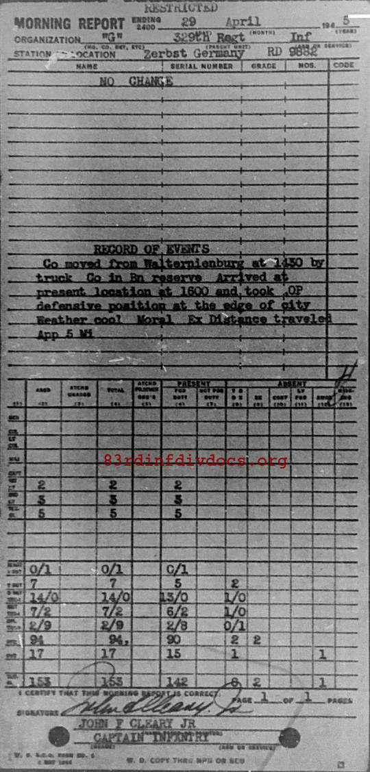 Morning report G/329 for April 29, 1945
