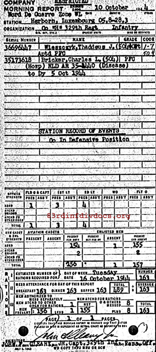 Morning report H/329 for October 10, 1944