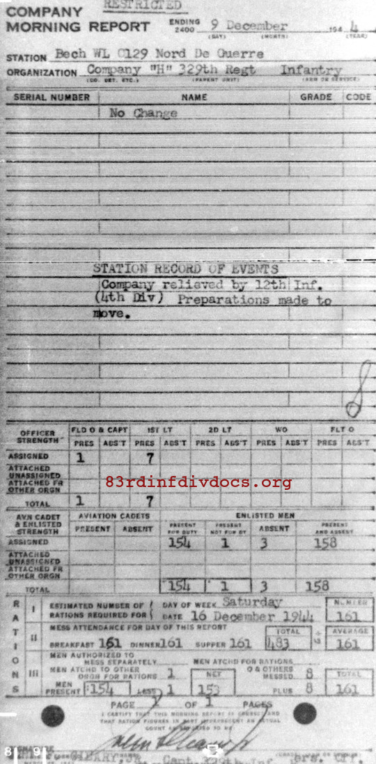 Company relieved by 12th Inf (4th Div). Preparations made to move.