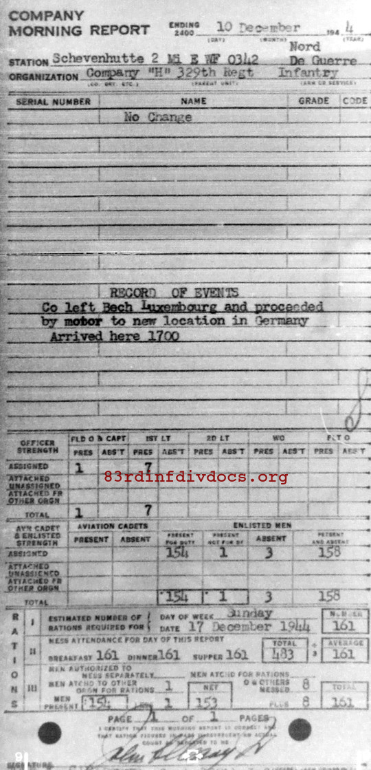 Co left Bech Luxembourg and proceeded by motor to new location in Germany. Arrived here 1700.