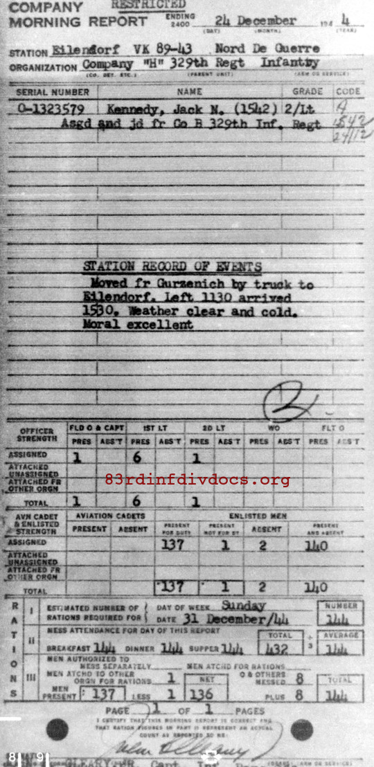 Morning report H/329 for December 24, 1944