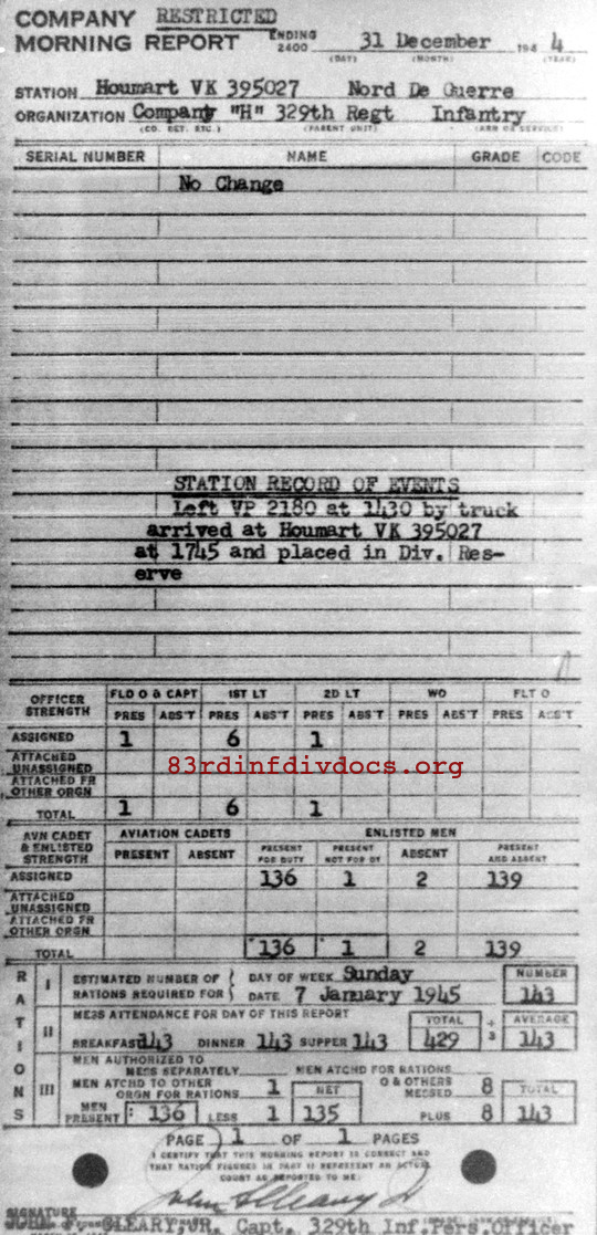 Left VP2180 at 1430 by truck arrived at Houmart VK395027 at 1745 and placed in Div. Reserve.
