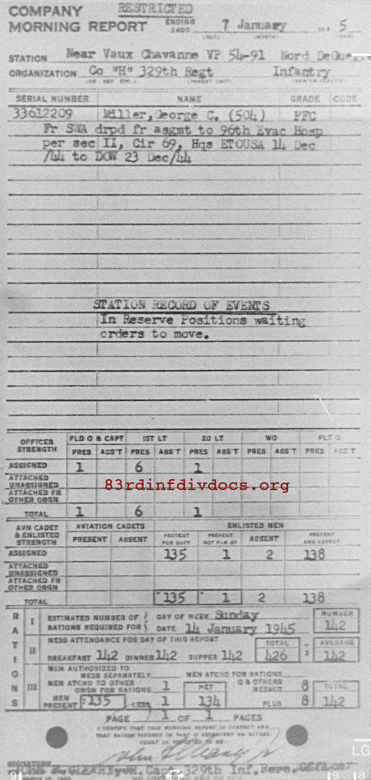 Morning report H/329 for January 7, 1945