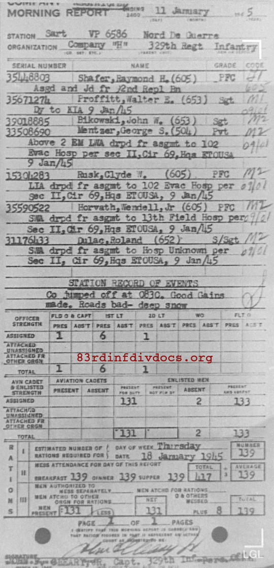 Morning report H/329 for January 11, 1945