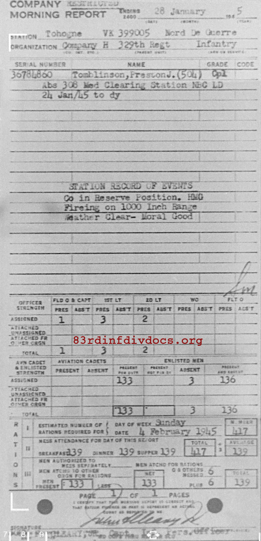 Co in Reserve position. HMG Fireing on 1000 Inch Range. Weather Clear. Moral Good.
