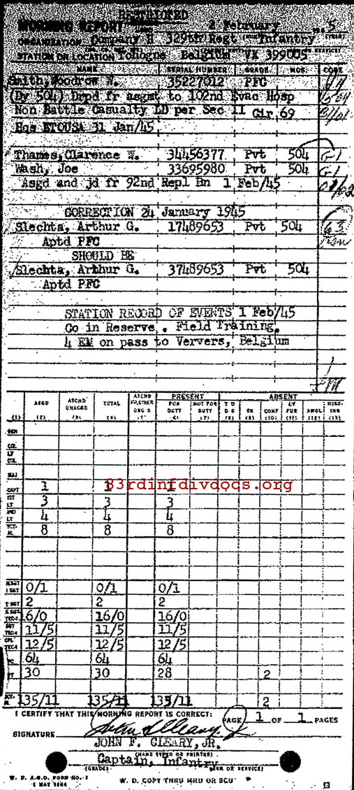 Morning report H/329 for February 2, 1945