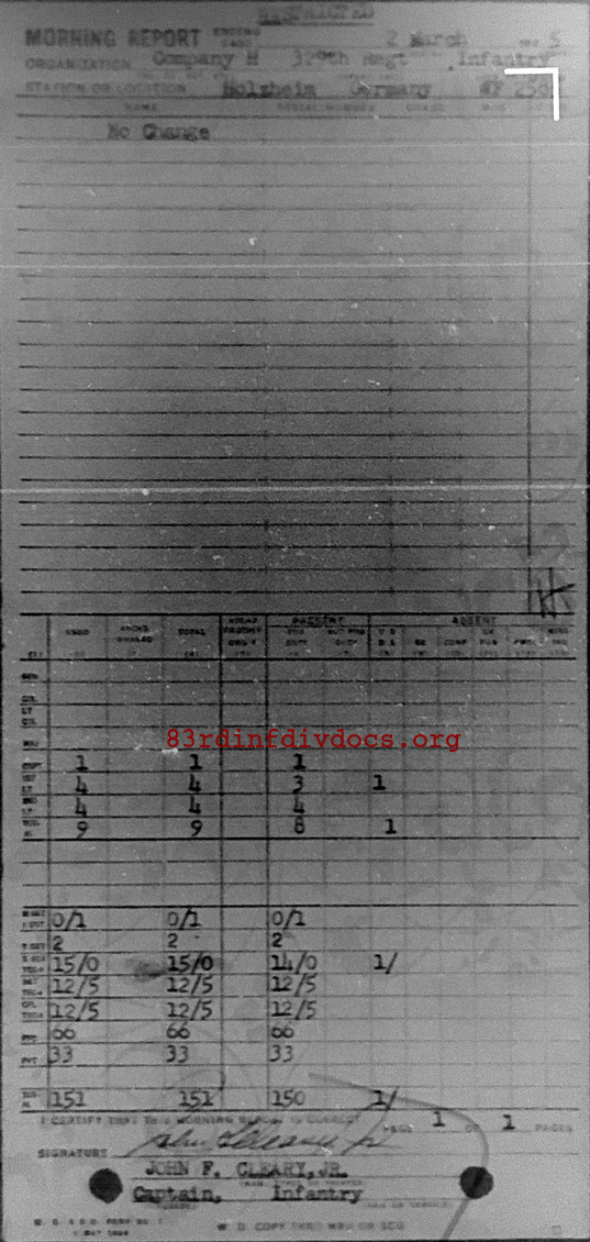 Morning report H/329 for March 2, 1945