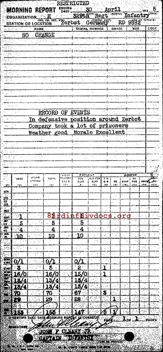 Morning report H/329 for April 30, 1945