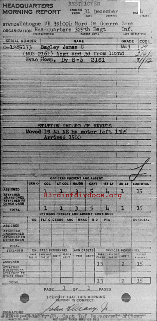 Morning report HQ/329 for December 31, 1944