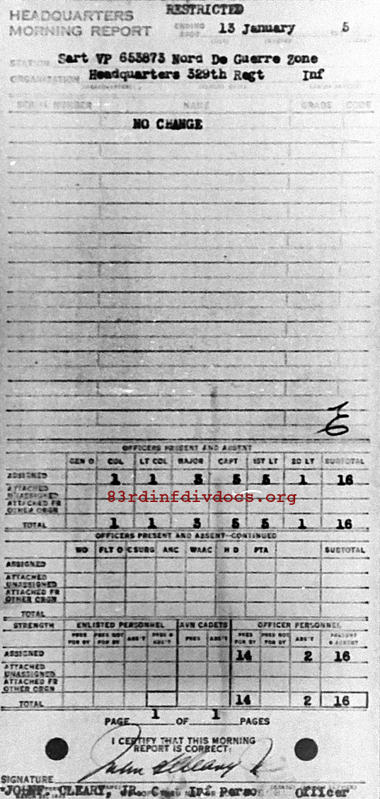 Morning report HQ/329 for January 13, 1945