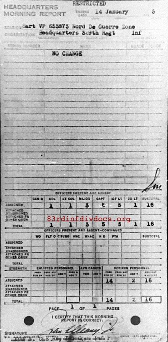 Morning report HQ/329 for January 14, 1945