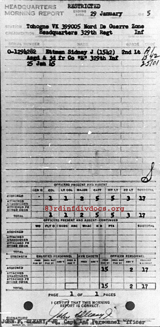 Morning report HQ/329 for January 29, 1945