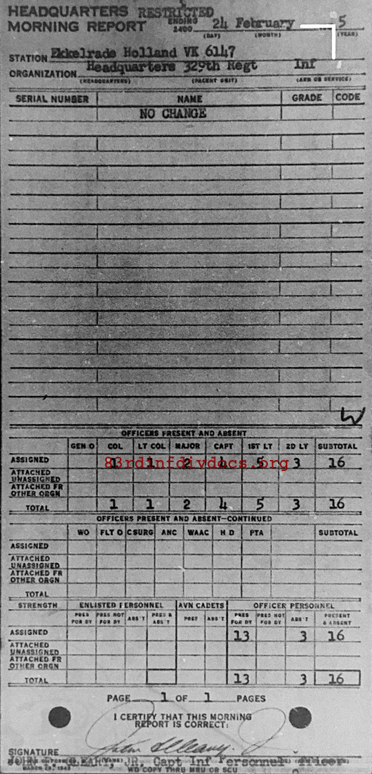 Morning report HQ/329 for February 24, 1945