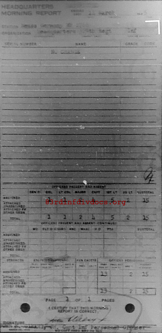 Morning report HQ/329 for March 11, 1945
