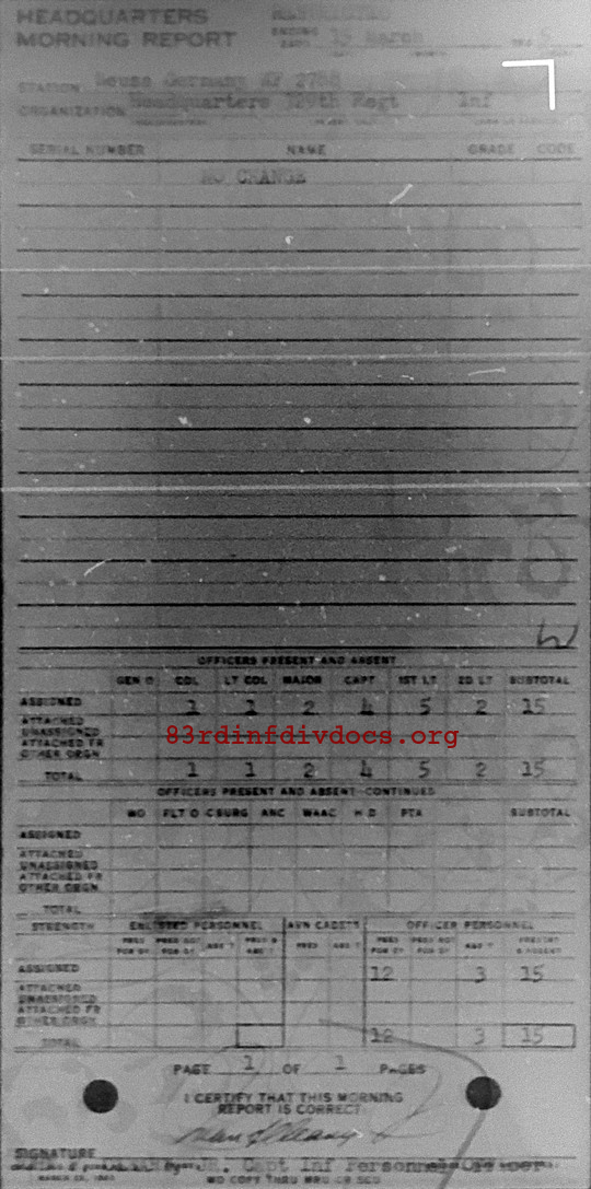 Morning report HQ/329 for March 15, 1945