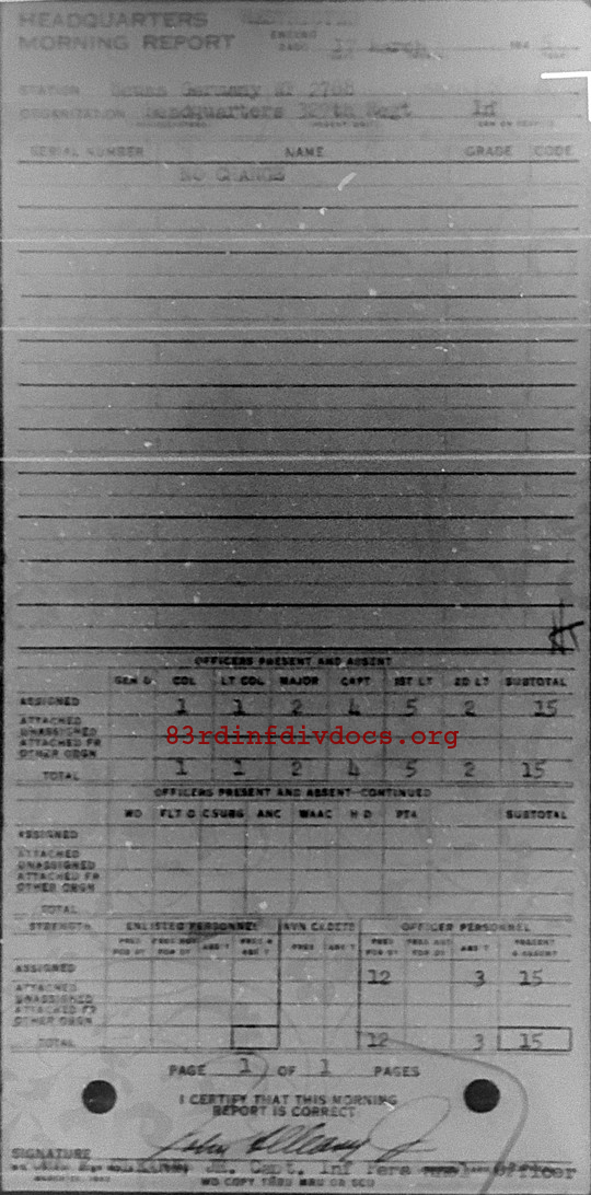 Morning report HQ/329 for March 17, 1945