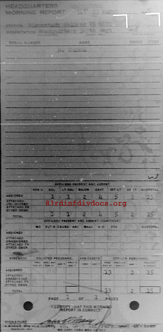 Morning report HQ/329 for March 23, 1945