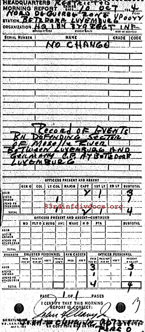 Bn defending sector of Moselle River between Luxembourg and Germany. CP At Betzdorf, Luxembourg.