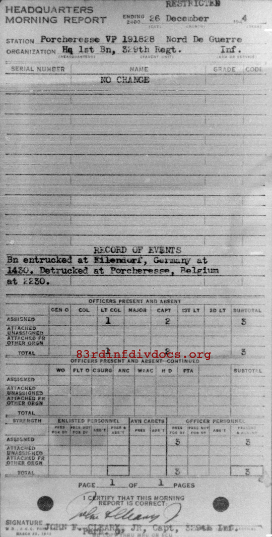 Morning report HQ1BN/329 for December 26, 1944