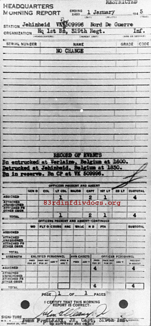 Morning report HQ1BN/329 for January 1, 1945