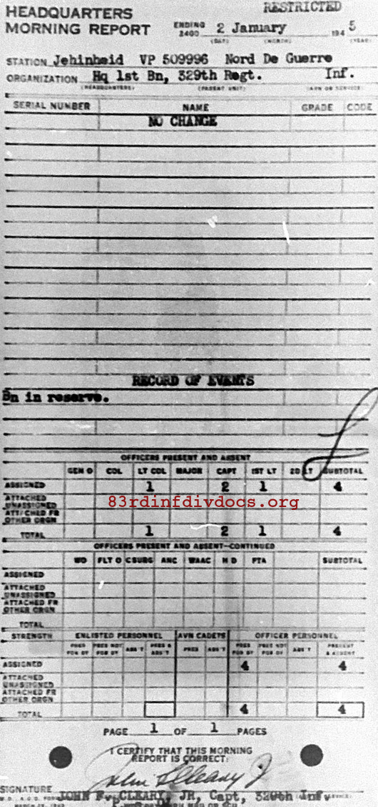 Morning report HQ1BN/329 for January 2, 1945