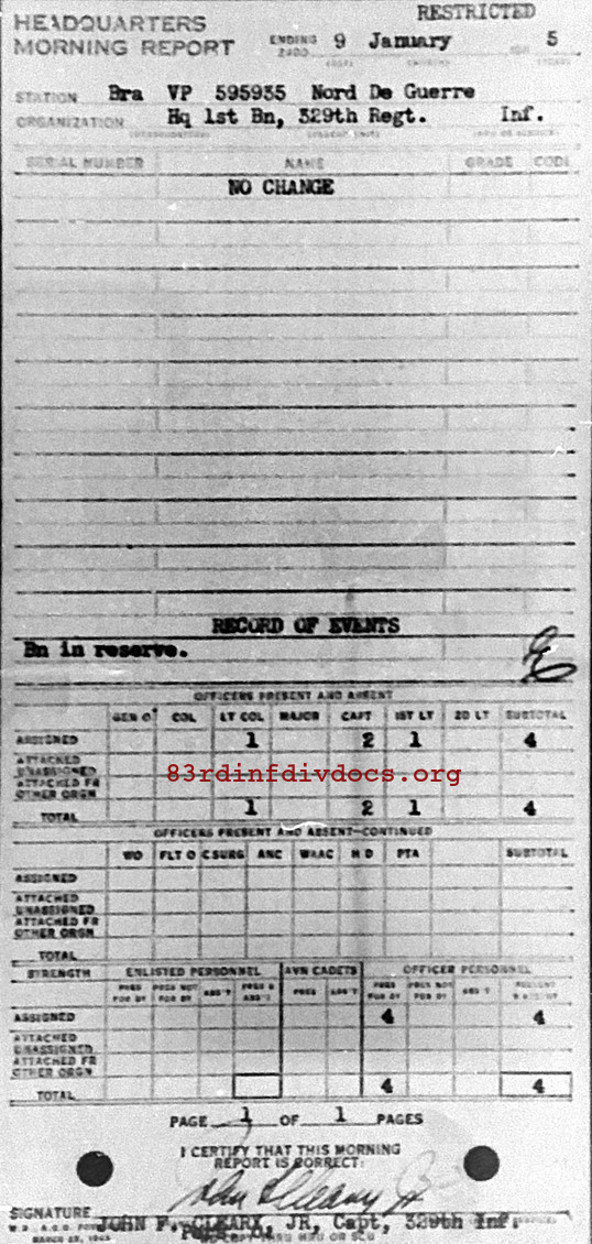 Morning report HQ1BN/329 for January 9, 1945