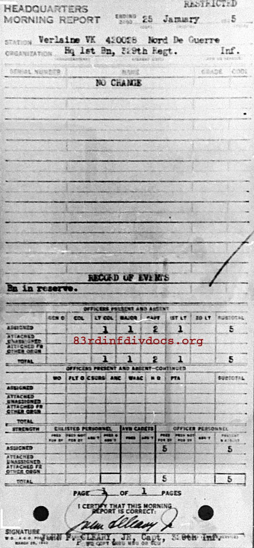 Morning report HQ1BN/329 for January 25, 1945