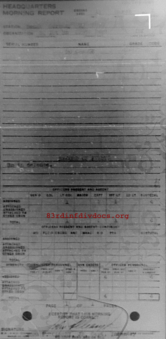 Morning report HQ1BN/329 for March 12, 1945