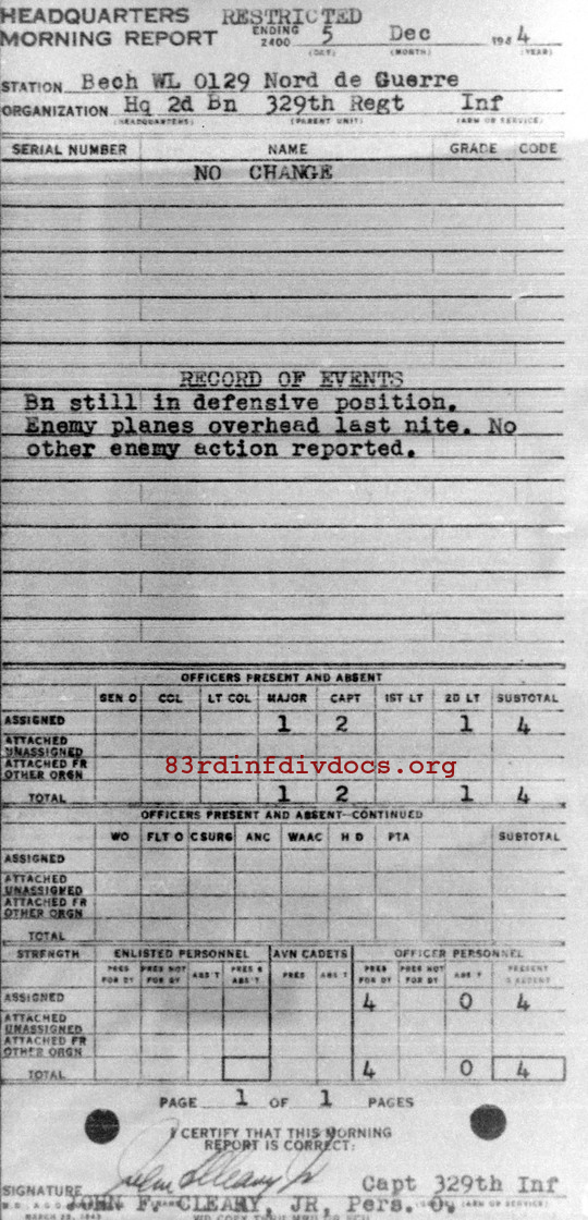 Bn still in defensive postion. Enemy planes overheard last nite. No other enemy action reported.