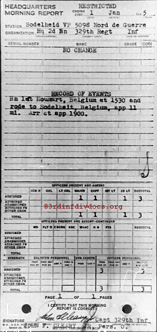 Morning report HQ2BN/329 for January 1, 1945