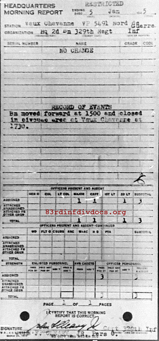 Morning report HQ2BN/329 for January 5, 1945