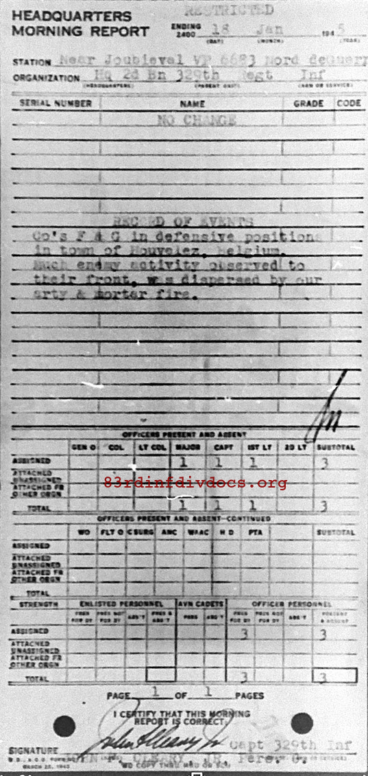 Morning report HQ2BN/329 for January 18, 1945
