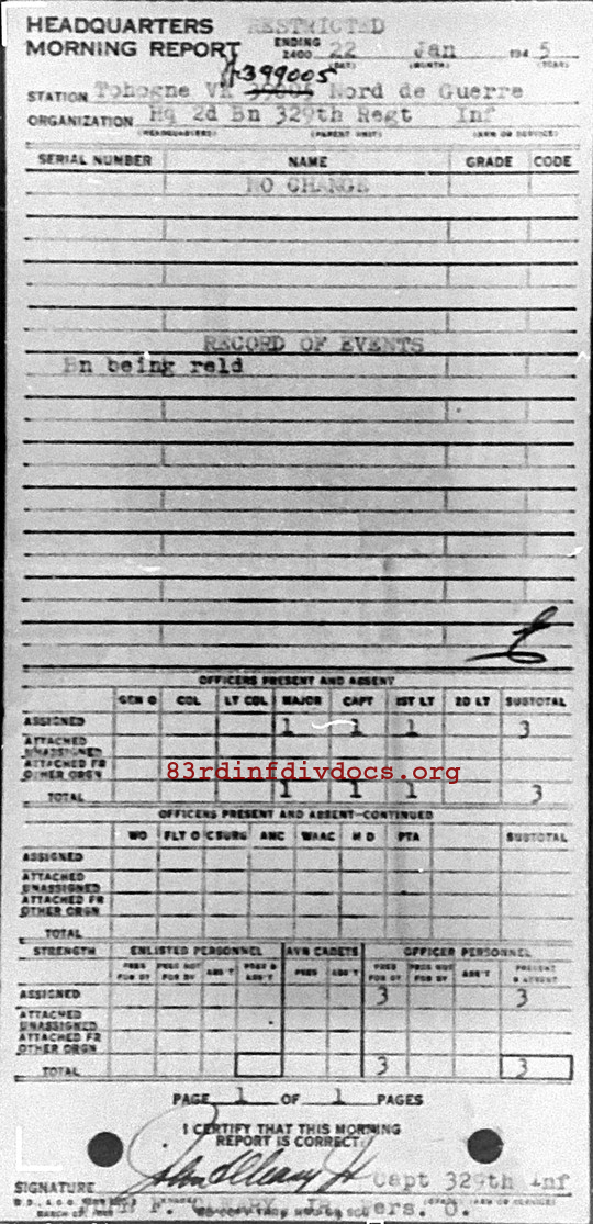 Morning report HQ2BN/329 for January 22, 1945