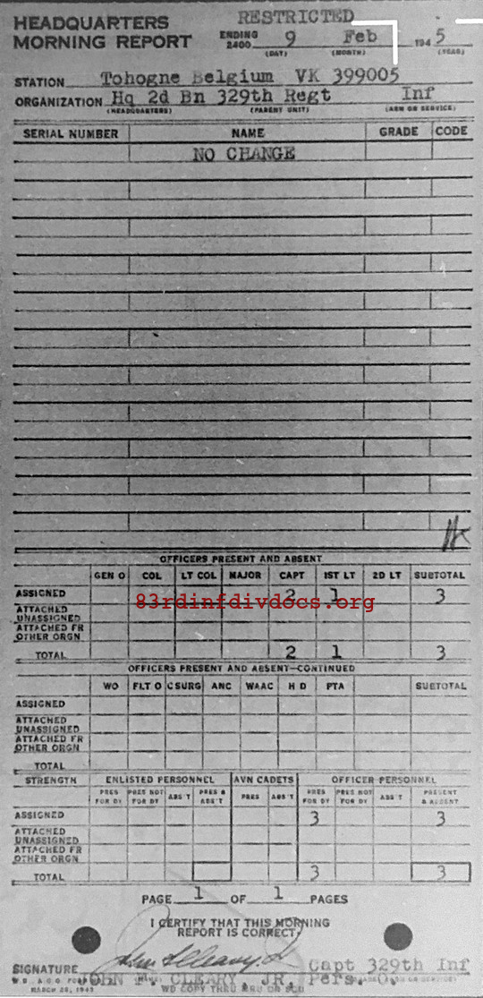 Morning report HQ2BN/329 for February 9, 1945