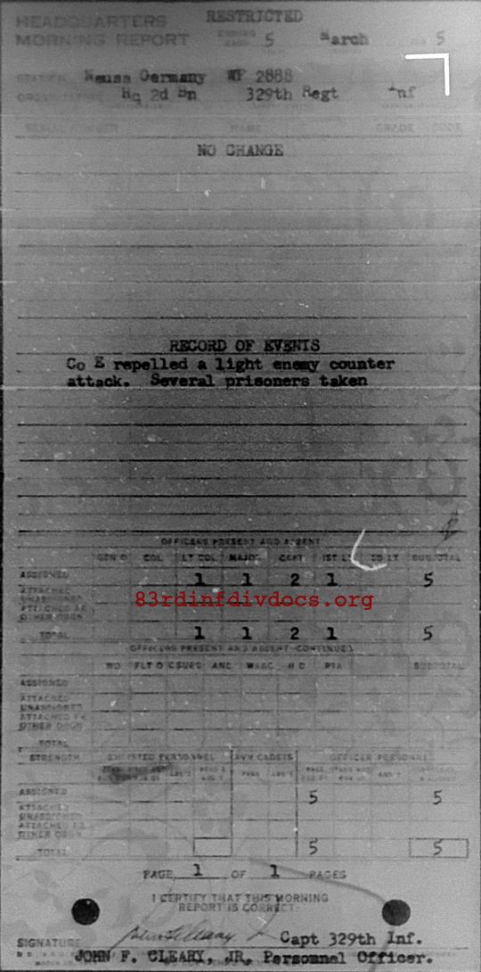 Co E repelled a light enemy counter attack. Several prisoners taken.