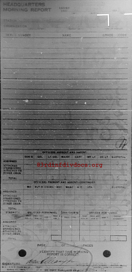 Morning report HQ2BN/329 for March 12, 1945