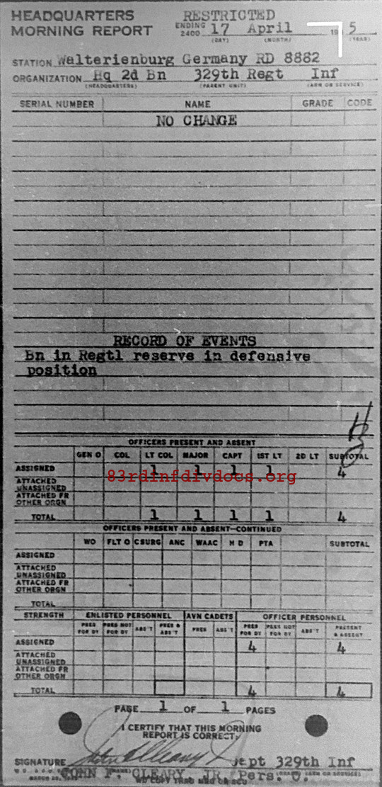 Morning report HQ2BN/329 for April 17, 1945