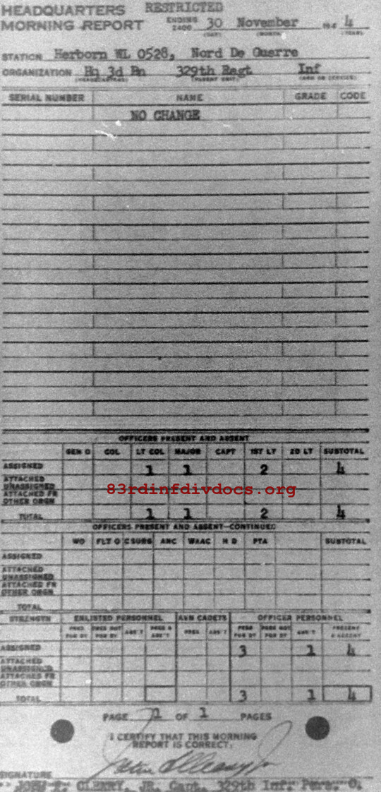 Morning report HQ3BN/329 for November 30, 1944