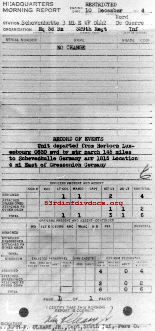 Morning report HQ3BN/329 for December 10, 1944