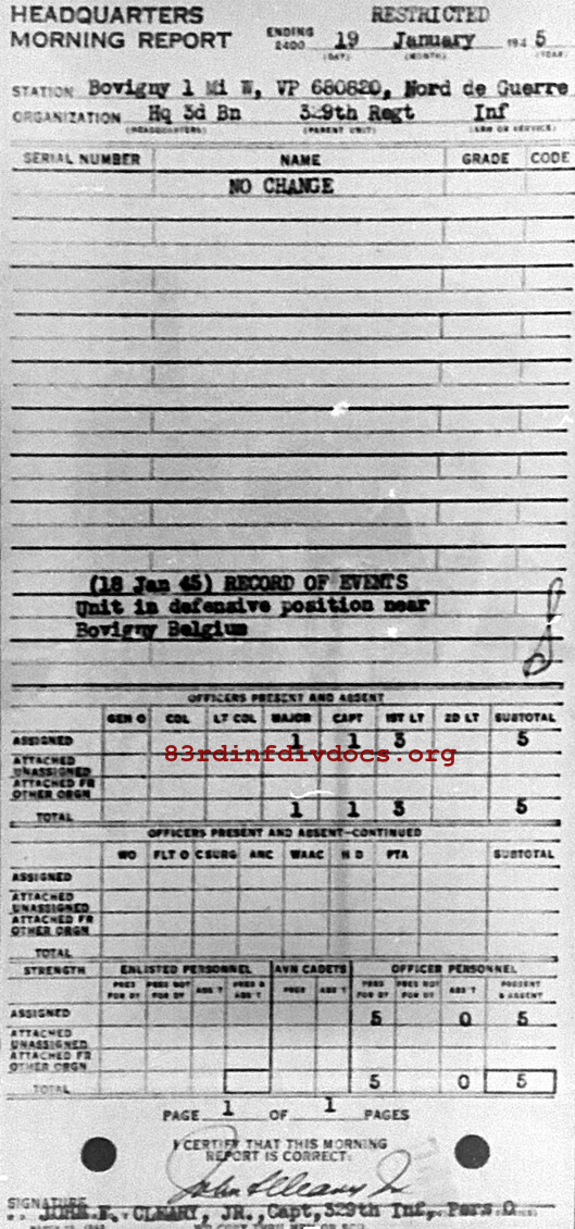 Morning report HQ3BN/329 for January 19, 1945