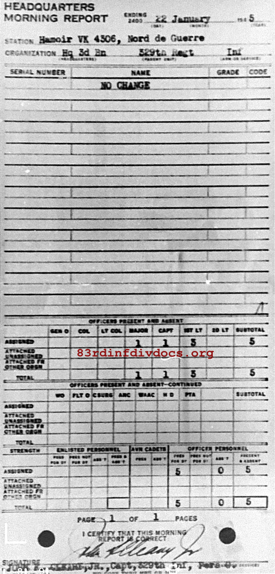 Morning report HQ3BN/329 for January 22, 1945