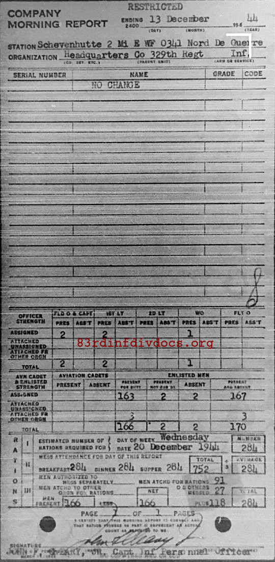Morning report HQCO/329 for December 13, 1944