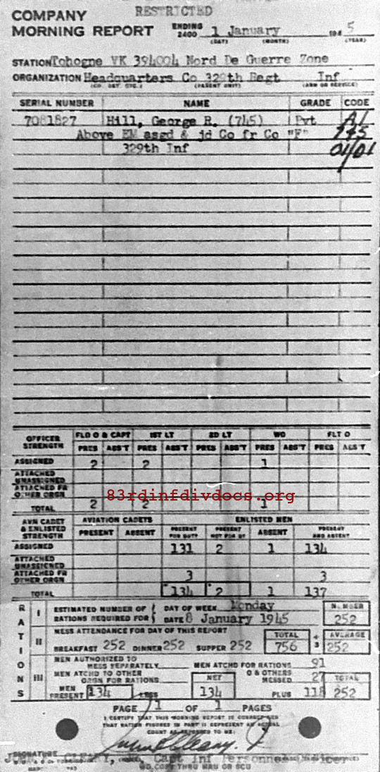 Morning report HQCO/329 for January 1, 1945